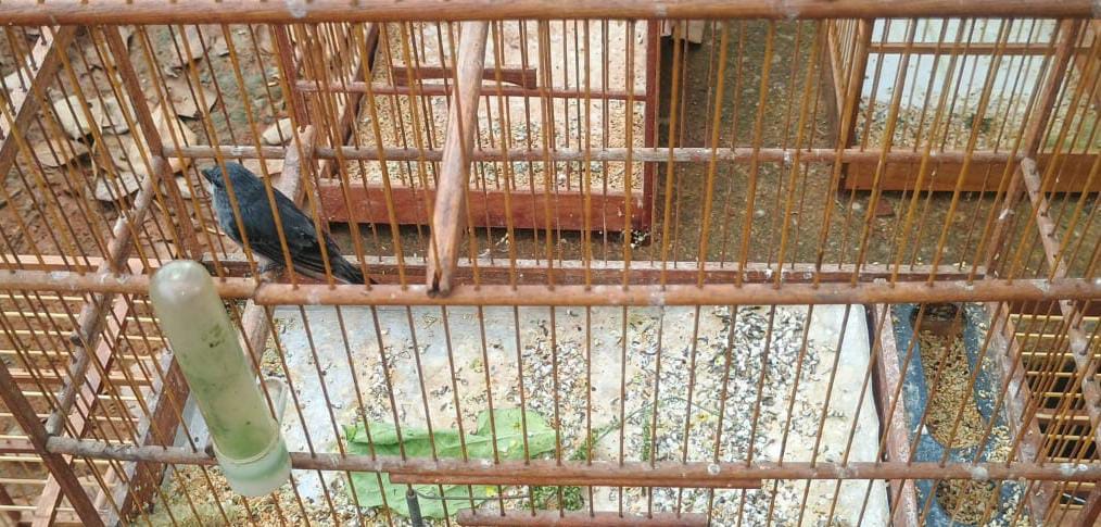 Os cães estavam sendo mantidos em situações inadequadas, presos do lado de fora da residência. E cerca de 25 aves estavam mantidas em gaiolas sujas e sem anilhas.