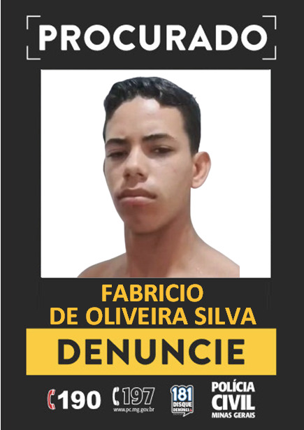 Qualquer informação sobre o paradeiro de Fabrício de Oliveira Silva pode ser repassada anonimamente pelos telefones 181 (Disque Denúncia), 197 ou 190.